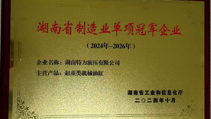 近日,公司憑借著起重類機(jī)械油缸的卓越技術(shù)實(shí)力和市場(chǎng)領(lǐng)導(dǎo)地位,正式被湖南省工業(yè)和信息化廳授予“湖南省制造業(yè)單項(xiàng)冠軍企業(yè)”榮譽(yù),標(biāo)志著我司成為該細(xì)分領(lǐng)域的標(biāo)桿企業(yè)。